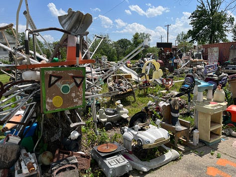 After lunch, I made my way to the Heidelberg Project a few minutes from Xochimilco. The Heidelberg is an outdoor art installation created by artist Tyree Gunton to shine a light on the urban blight of Detroit. The project is a community effort that repurposes discarded items of all varieties into public art installations.