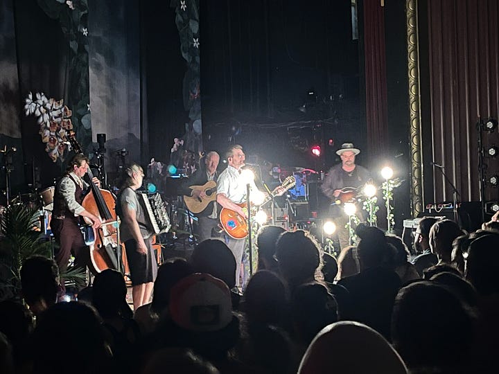 The Royal Oak Music Theater is a converted old movie palace and former vaudeville theater that is one of the finest spots in Detroit to see a show. As usual, the Decemberists put on a terrific show full of bombast, clever wordplay, and nerdy theatricality. It has all of the itinerate parts for someone in love with the English language, storytelling, and unabashed nerdy. My guess is that at least 60% of the Decemberists audience on a given night was once in the AV Club or Quiz Bowl.
