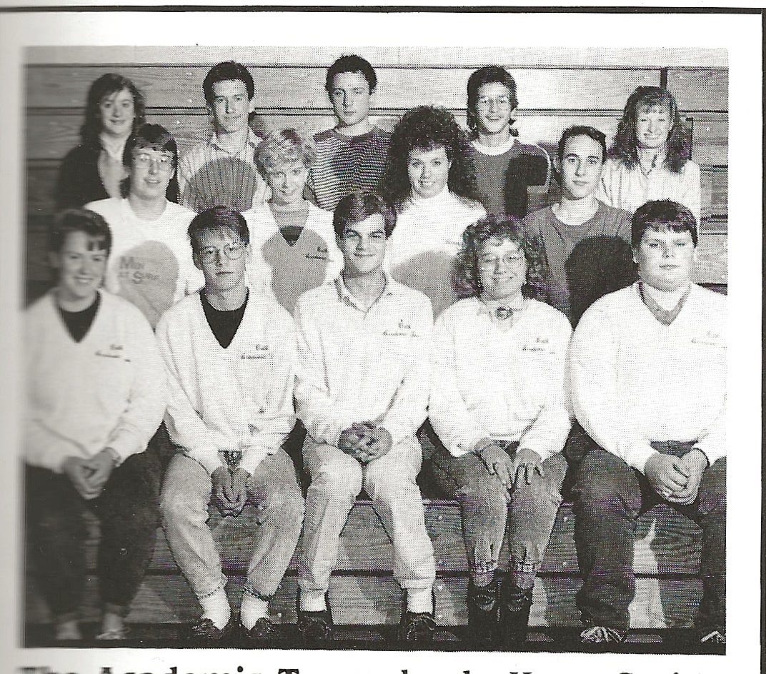 By my sophomore year I had entered into the world of quiz bowl. We had matching V-neck sweaters instead of uniforms and these people became my friends. They were funny and genuine and actually liked me.