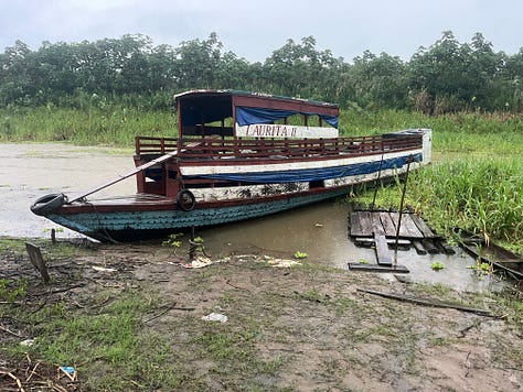 After our leisurely breakfast, Carlos offered to take us to a local village to view a lily pad garden. To my surprise, most of our crew decided to hang back. Only Ama, myself, and our new friend Monica took Carlos up on his offer. Within five minutes we found ourselves back in the boat once again cruising along the watery boulevard that is the Amazon.