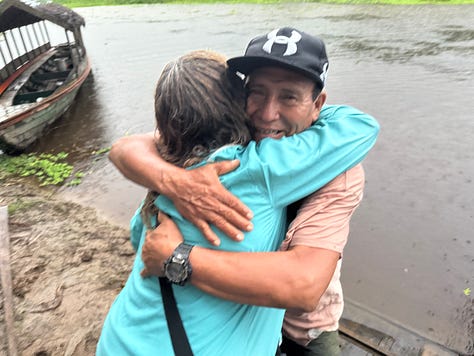 As Carlos dropped us off we realized it was the last time we would see him. Ama gave him a huge hug and thanked him profusely for his expertise and for sharing his life with us. I too hugged our new friend and he offered to get me some ayahuasca on my next visit. We walked up the walkway to the lodge as the light faded on another day in the Amazon. The rain continued to fall.