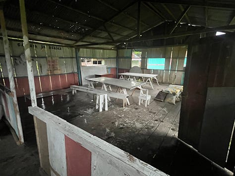 To the left was a large open concrete building that was the cafeteria and a kitchen for the village’s school. Carlos walked us inside the facility which was nothing more than a crude concrete frame with open windows. Two thirds of the space was set up with makeshift tables and erstwhile seating. A whiteboard sat on the floor along the wall.